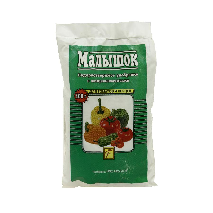 Малышок- комплексное водорастворимое бесхлорное удобрение с микроэлементами, содержащее все элементы питания, необходимые для выращивания здоровых и сильных томатов, перцев и баклажанов.