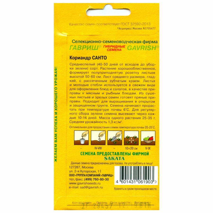 Среднеспелый (40-50 дней от всходов до уборки зелени) сорт. Растение хорошооблиственное, формирует полуприподнятую розетку листьев высотой 50-60 см. Лист среднего размера, гладкий, с рассеченным зубчатым краем. Листья и молодые стебли используется в свежем виде для оформления блюд и салатов, в качестве приправы к мясным и рыбным блюдам. Из сушеных листьев и зрелых семян приготавливают пряные приправы. Подходит для выращивания в открытом и защищенном грунте. Семена начинают прорастать при температуре почвы 6°С. Для регулярного сбора зелени семена высевают через каждые 10-14 дней. Масса одного растения 25-35 г. Средняя урожайность 1,3 кг/кв.м.