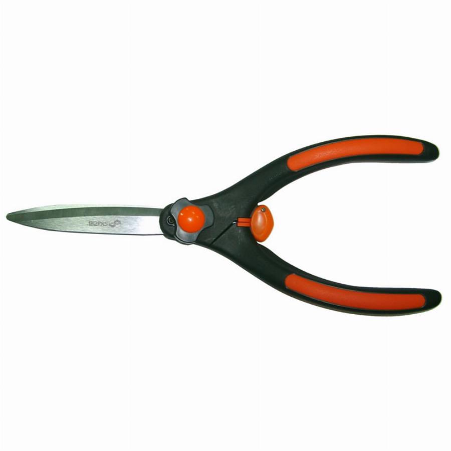 185 мм, с прямыми лезвиями, ручки из нейлона, армированного фиберглассом. Предназначен для обрезки кроны небольших кустов и живых изгородей, а также для использования в качестве ножниц для травы. Рукоятки изготовлены из нейлона, армированного фибергласом, и покрыты мягкой термопластичной резиной. Запатентованный механизм возвратной пружины увеличивает эффективность реза и экономит усилия. Усиленные коррозионностойкие хромированные лезвия. Специальный винт для регулировки прижима лезвий друг к другу. Надежный и удобный в использовании фиксатор.