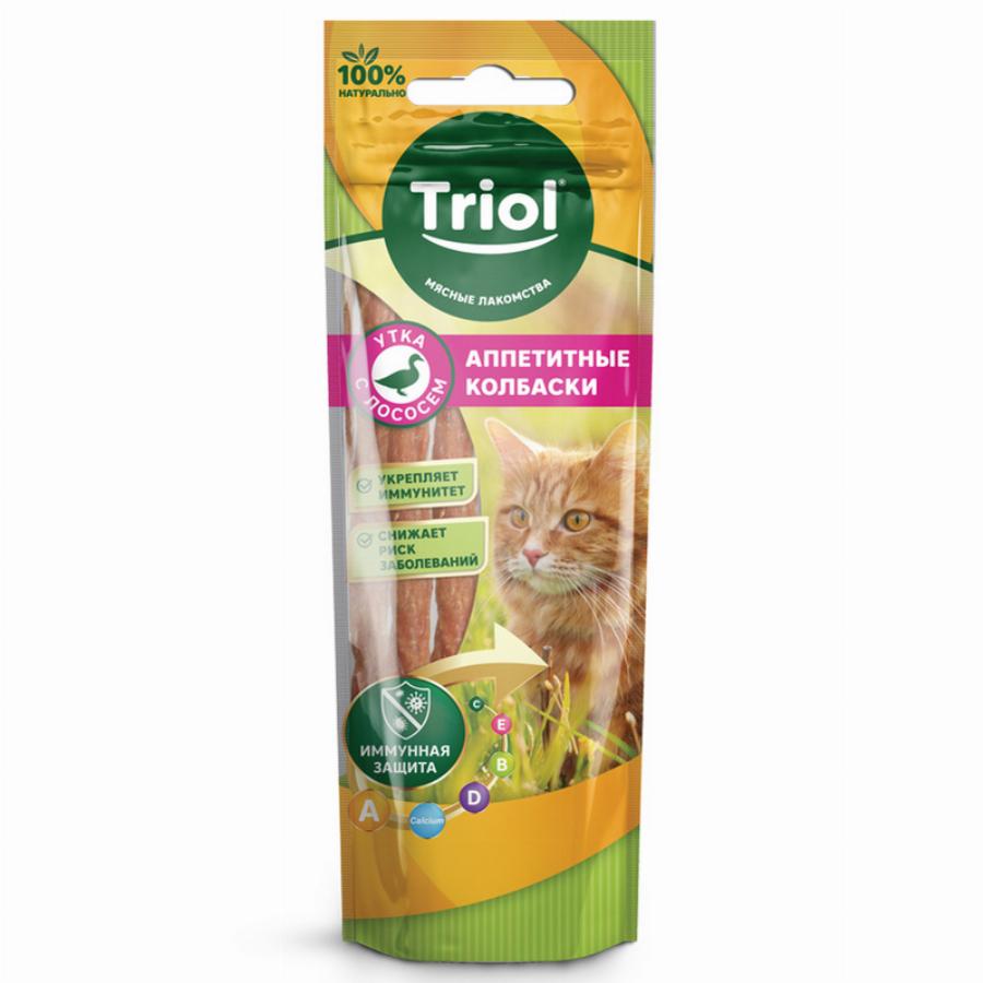 ЛАКОМСТВА ДЛЯ КОШЕК triol АППЕТИТНЫЕ КОЛБАСКИ ИЗ УТКИ С ЛОСОСЕМ 40 Г