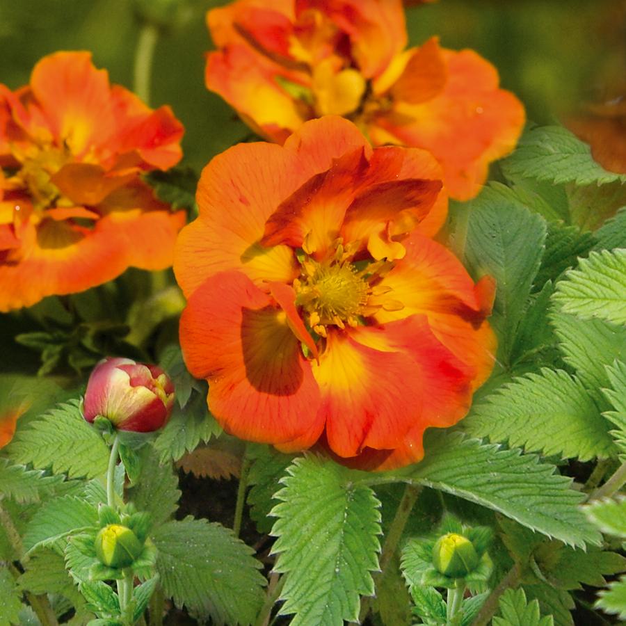 Травянистые растения высотой 30-80 см, всё лето усыпанные полумахровыми ярко-оранжево-красными цветками (2,5-5 см в диаметре). Нетребовательна, но лучше развивается на рыхлых питательных почвах с небольшим содержанием извести и хорошим дренажом. В конце сезона старые побеги обрезают, а весной мульчируют почву вокруг отрастающих побегов. При необходимости раскидистым стеблям травянистых лапчаток следует дать опору. Размножают травянистые лапчатки делением куста (весной или осенью) через 4 года. Успешно размножение семенами, посев которых можно производить в любое время в течение сезона. Сеянцы травянистой лапчатки зацветают на 2-3 год. Травянистые лапчатки не требуют укрытия на зиму, поскольку эти растения абсолютно морозостойки под снежным покровом.