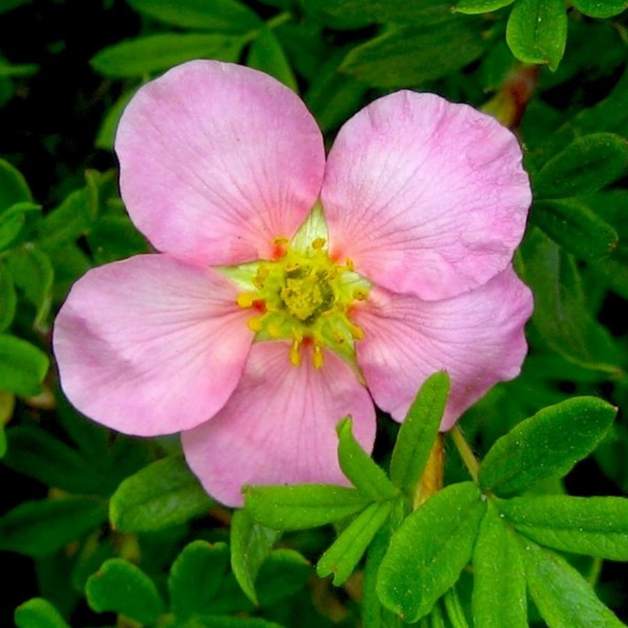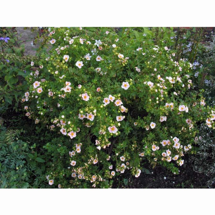 Кустарник. Высота 0,5-0,7м, диаметр кроны 1,2м. Крона плотная, подушковидная. Период цветения: май-октябрь. Цветки розовые. Способны выгорать на солнце. Листва: темно-зеленые. Состоят из 5 листочков, опушенные. Место: солнце-полутень. Почва: плодородные, влажные, легкие почвы.