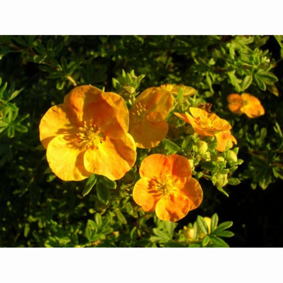 Кустарник. Высота и диаметр кроны 0,6м. Крона полураспростертая. Растет быстро. Период: июнь-октябрь. Цветение: Цветки крупные, желто-оранжевые или темно-желтые. Место: Солнце-полутень. Почва: Плодородная, влажная, легкая. Листва: Светло-зеленые, опушенные, состоят из 5 листочков.