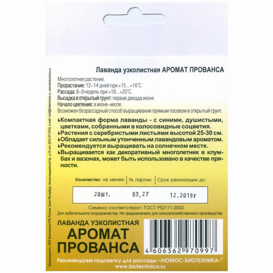 ЛАВАНДА УЗКОЛИСТНАЯ АРОМАТ ПРОВАНСА 20 ШТ биотехника