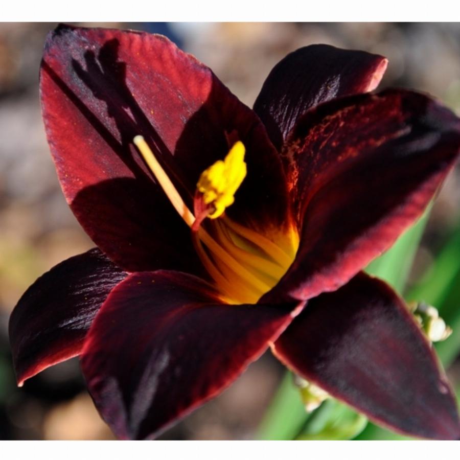 Цветки шоколадно-фиолетовой окраски с бордовым краем диаметром 15 см. Высота цветоносов 70 см. Тетраплоид. Характерно повторное цветение. Относится к группе полувечнозелёных лилейников.