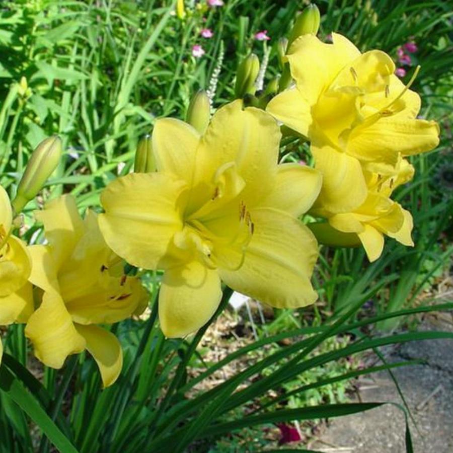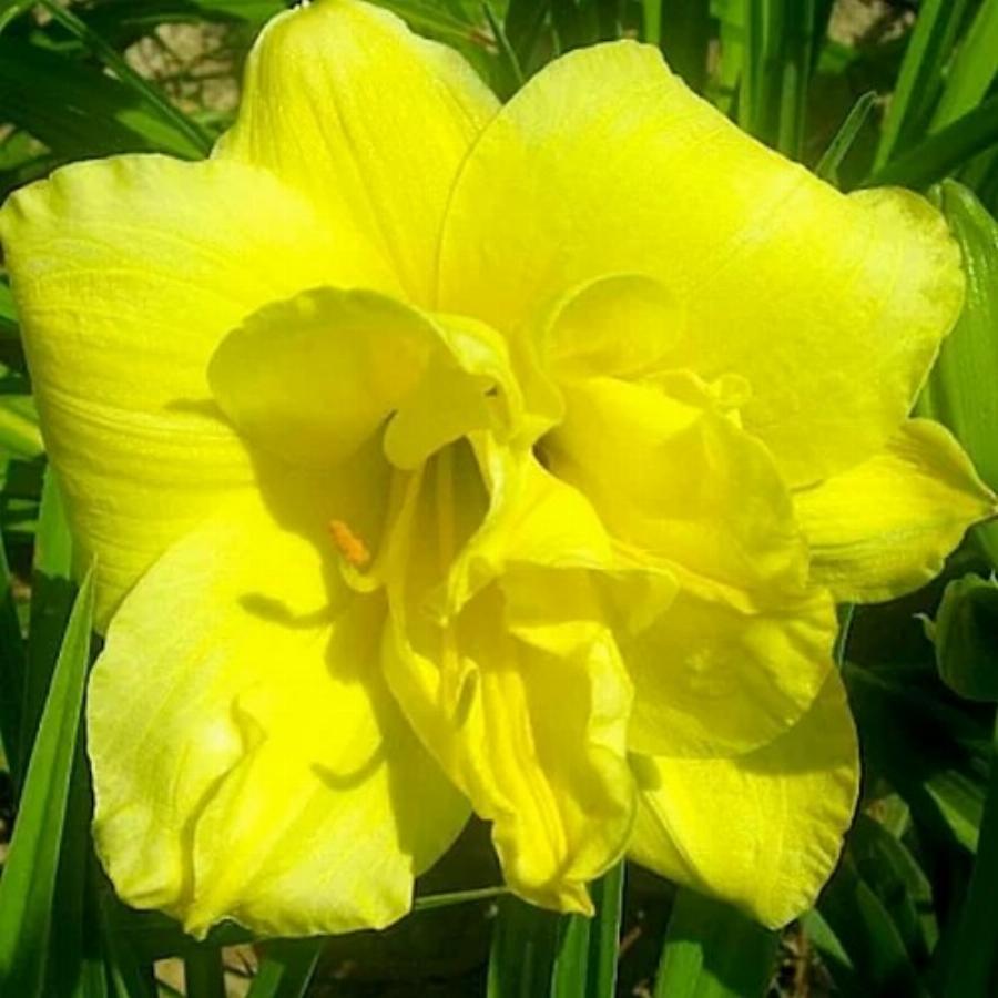 Миниатюрный сорт высотой 30-40 см. Махровый желто-зеленый цветок в диаметре 10 см ровной окраски. Лепестки гофрированы по краям, слегка изогнуты на концах, расположены в несколько рядов. Вечнозеленый, диплоид, повторноцветущий. Морозостойкость до (-35°С).