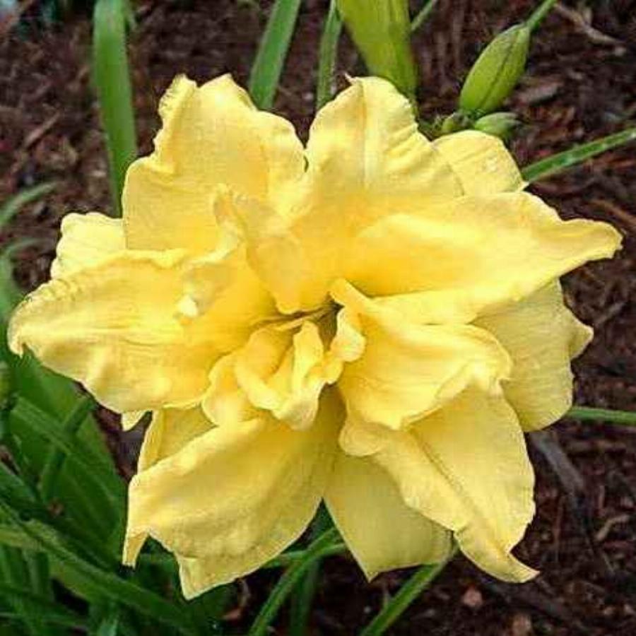 Многолетнее корневищное, растение до 70 см высотой, с прямыми дуговидно изогнутыми листьями. Цветки крупные, махровые, желтой окраски. Цветение продолжительное с июля по сентябрь, предпочитает освещенные места и проницаемые, влажные, плодородные почвы. Засухоустойчив. Зимостоек. Отзывчив на удобрения, особенно в момент заложения цветочных бутонов. Размножают делением корневища, в апреле-мае или в сентябре. Стабильно декоративен. Партнеры: многие многолетники, в том числе хоста, астильба, бадан, папоротники, ирисы, анемона гибридная.
