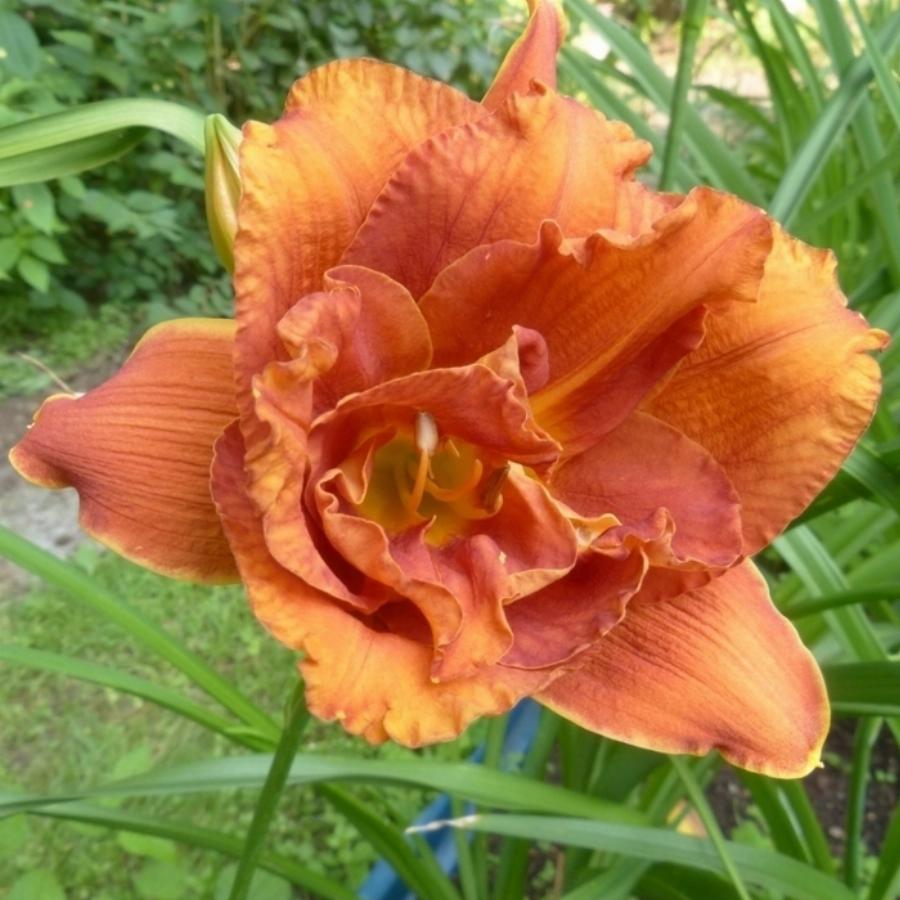 Махровый, оранжево-красный, высота куста 65 см, диаметр цветка 15 см. Цветение июнь-июль.