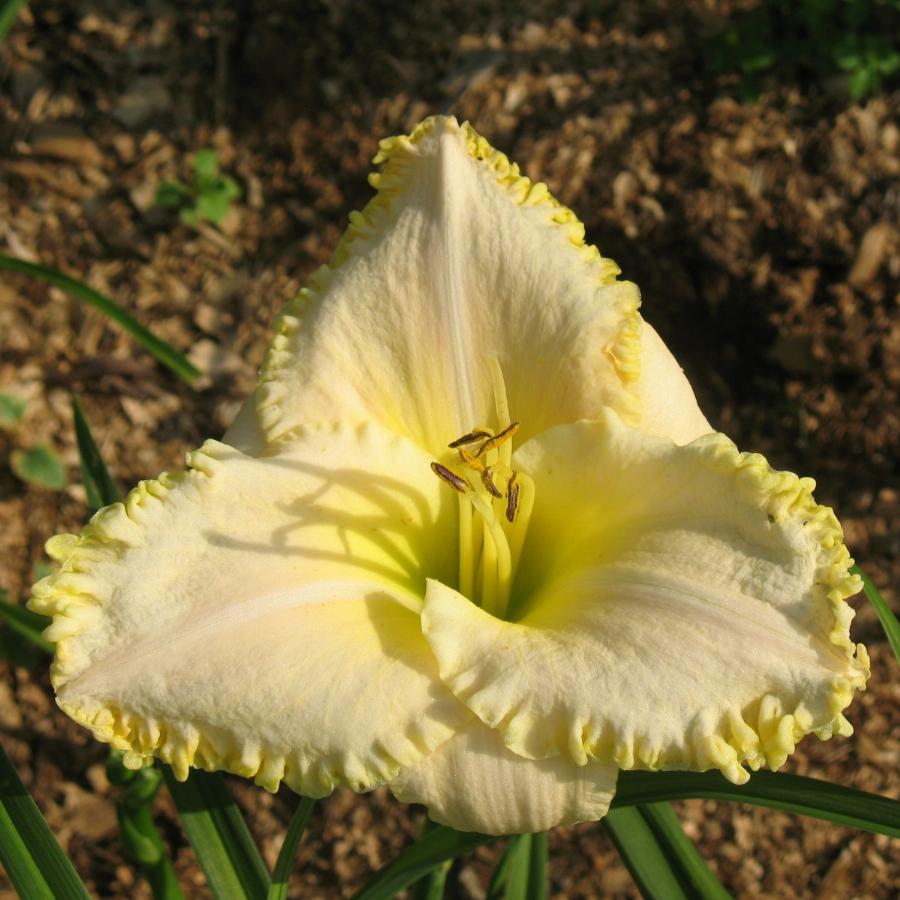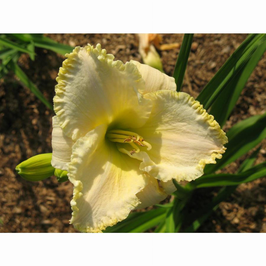 Высота 75 см. Диаметр цветка 15 см.Лавандо-розовый с широким золотым краем. Горло от желтого до зеленого в центре. Срок цветения средний.