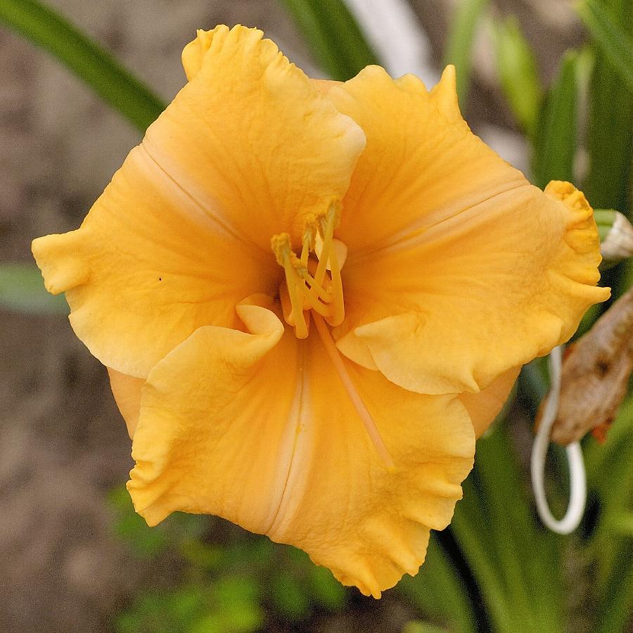 Оранжево-мандариновый цветок с очень гофрированной каймой.