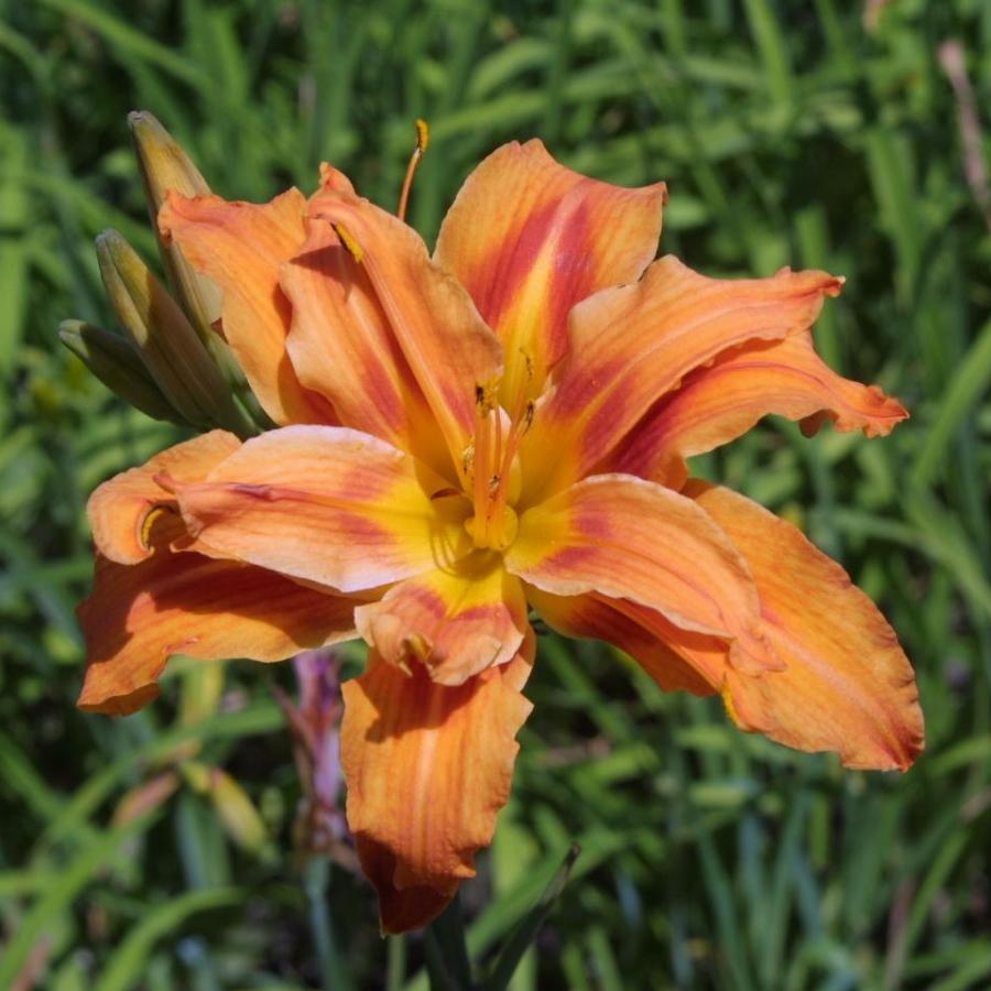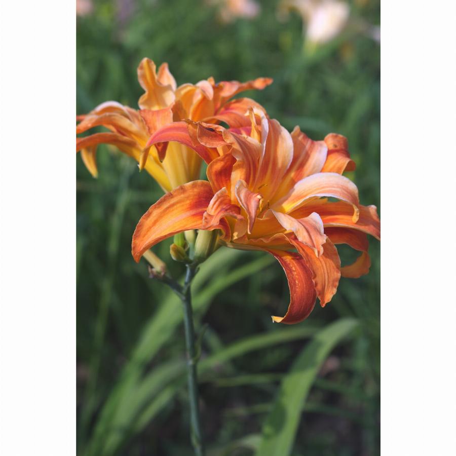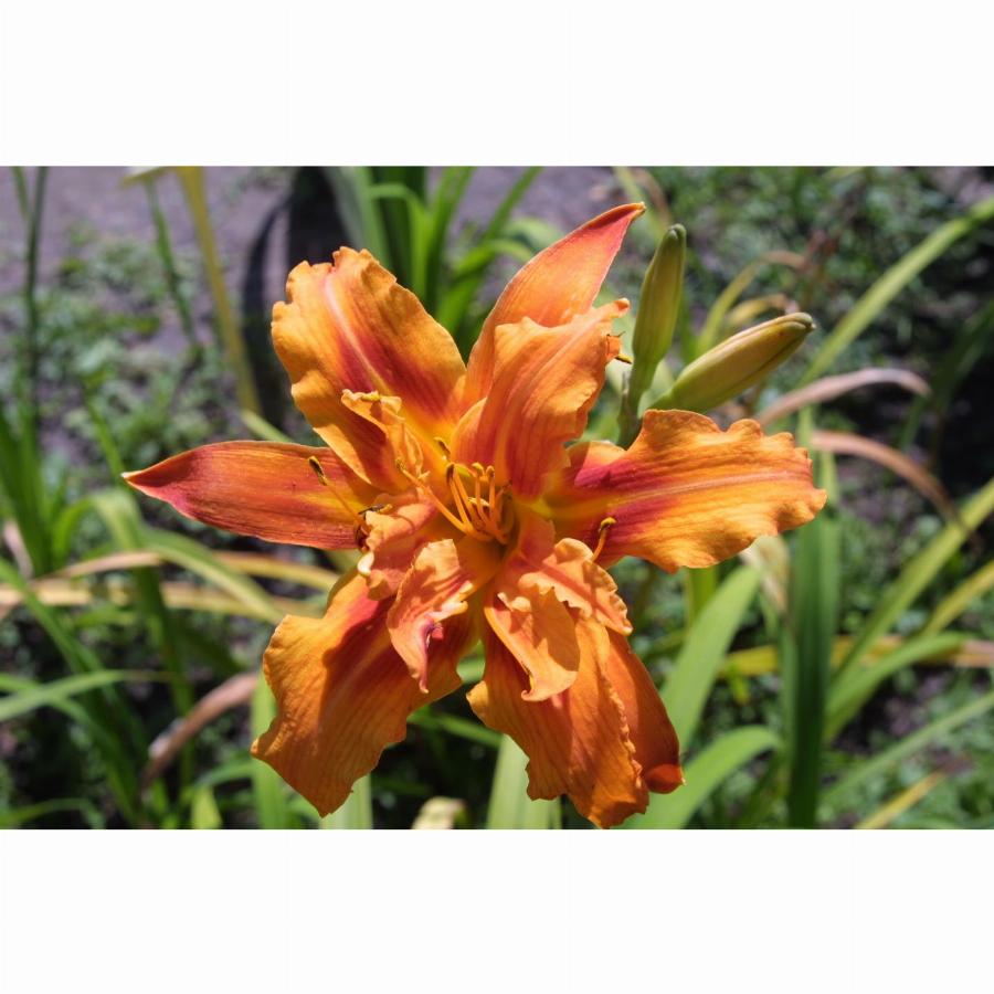 H = 90 -100 см, цветение июнь — август. Оранжевый махровый.