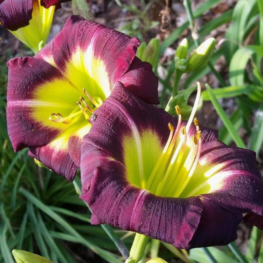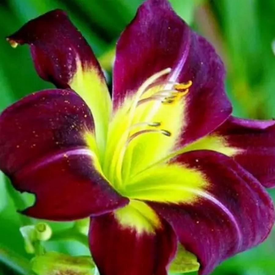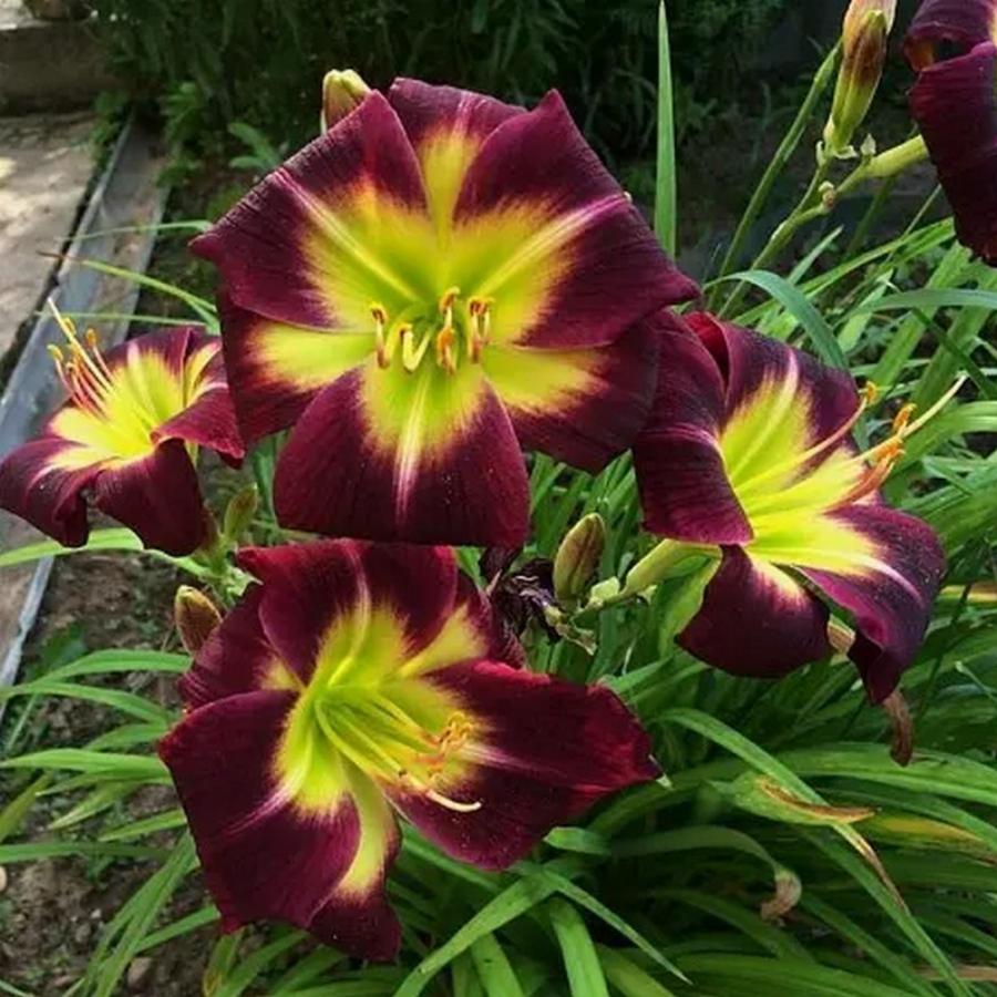 Сорт 1988 года. Многолетнее корневищное растение до 68 см высотой, с прямыми дуговидно изогнутыми, постоянно зелеными листьями. Цветки крупные, до 10 см в диаметре, темно – пурпурные с большим зеленым горлом, с широко раскрывающимися лепестками, показывающими полный узор, собраны в раскидистые соцветия. Среднепозднего срока цветения, ремонтантный. Цветение обильное. Предпочитает освещенные места и проницаемые, влажные, плодородные почвы. Засухоустойчив. Зимостоек. Отзывчив на удобрения, особенно в момент заложения цветочных бутонов. Долговечен, без пересадки растет 5-6, до 10 лет. Размножают делением корневища, в апреле-мае или в сентябре. Стабильно декоративен. Партнеры: многие многолетники, в том числе хоста, астильба, бадан, папоротники, ирисы, анемона гибридная. Используют в группах, рабатках, миксбордерах, у водоемов, а также в одиночных посадках.