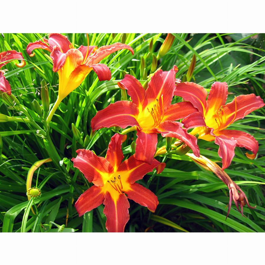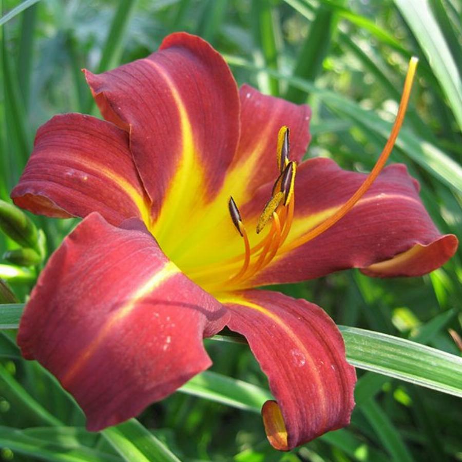 Оригинатор Nesmith, 1941 г. Высота — 90-120 см; диаметр цветка — 12см. Средний (начало августа); повторное цветение. Зона 3 (-40 / -34 °C). К болезням устойчив. Ярко-красный с желтым горлом.