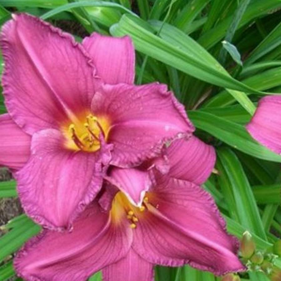 Высота растения- 61 см; диаметр цветка — 14 см. Цветение: Средний (начало августа). Зона зимостойкости 3 (-40 / -34 °с) Розово-пурпурный яркий цветок с зеленовато-желтым горлом.