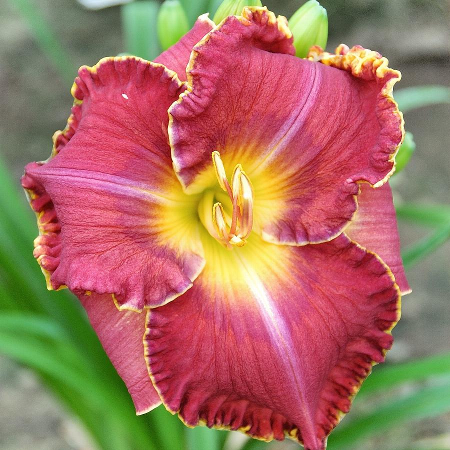 темный красно-фиолетовый с золотистым гофрированным краем.