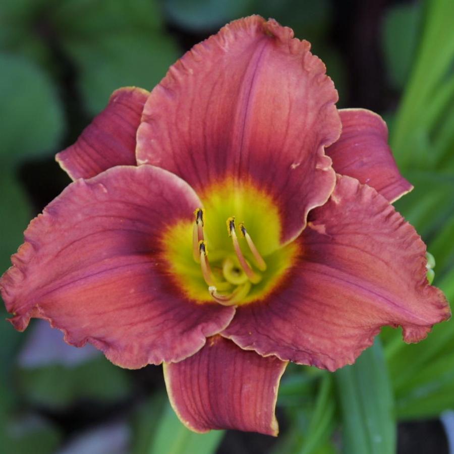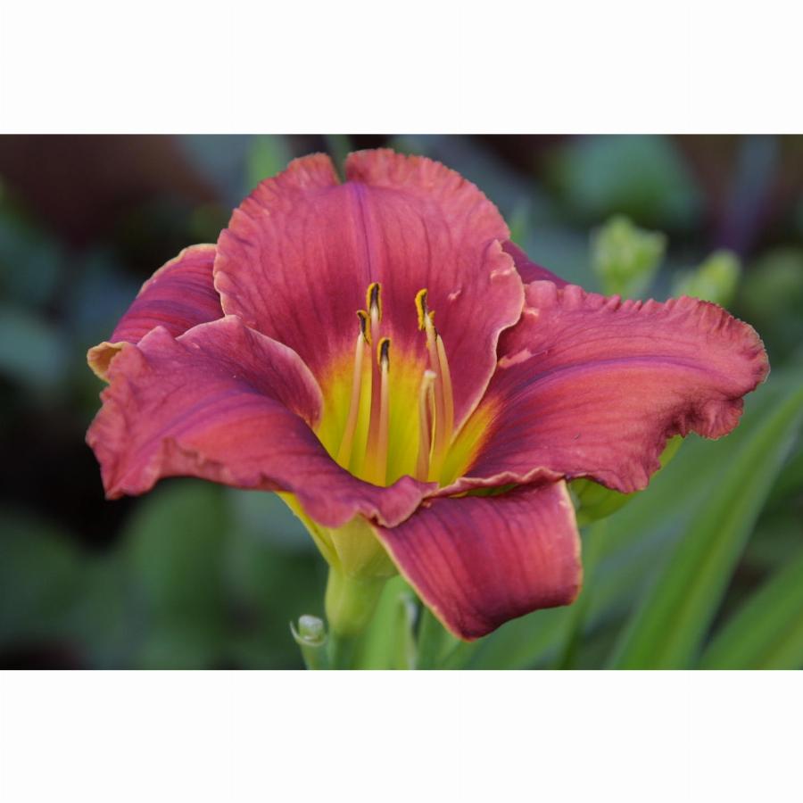 Многолетнее корневищное растение 50-60 см высотой, с прямыми дуговидно изогнутыми, постоянно зелеными листьями. Цветки ароматные, ярко – красные с желтым гофрированным краем, собраны в раскидистые соцветия. Тетраплоид, среднего срока цветения. Цветение обильное. Предпочитает освещенные места и проницаемые, влажные, плодородные почвы. Засухоустойчив. Зимостоек. Отзывчив на удобрения, особенно в момент заложения цветочных бутонов. Долговечен, без пересадки растет 5-6, до 10 лет. Размножают делением корневища, в апреле-мае или в сентябре. Стабильно декоративен. Партнеры: многие многолетники, в том числе хоста, астильба, бадан, папоротники, ирисы, анемона гибридная. Используют в группах, рабатках, миксбордерах, у водоемов, а также в одиночных посадках.