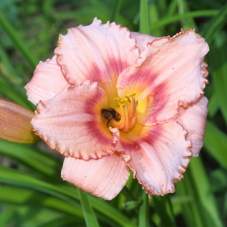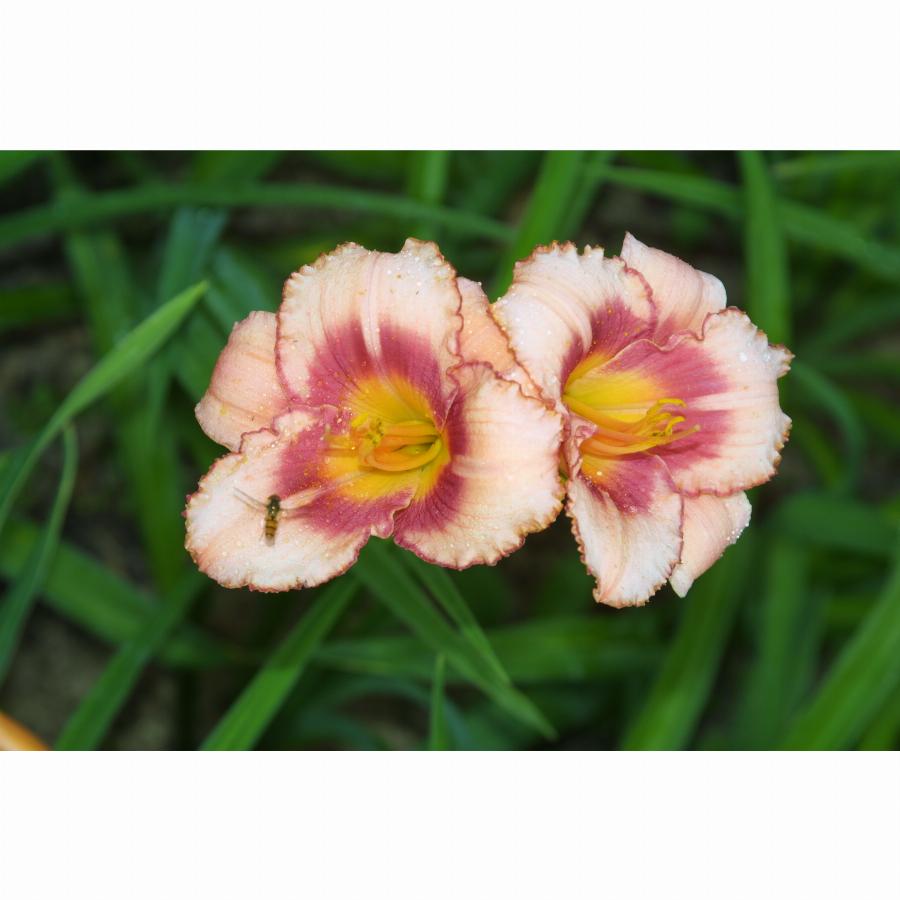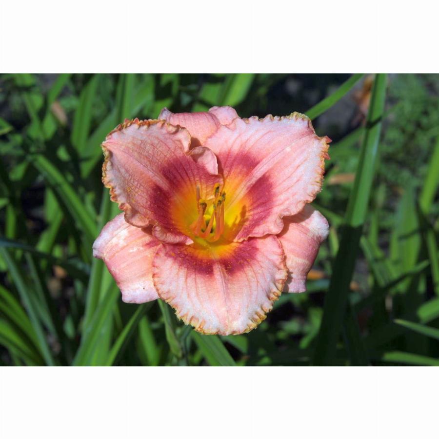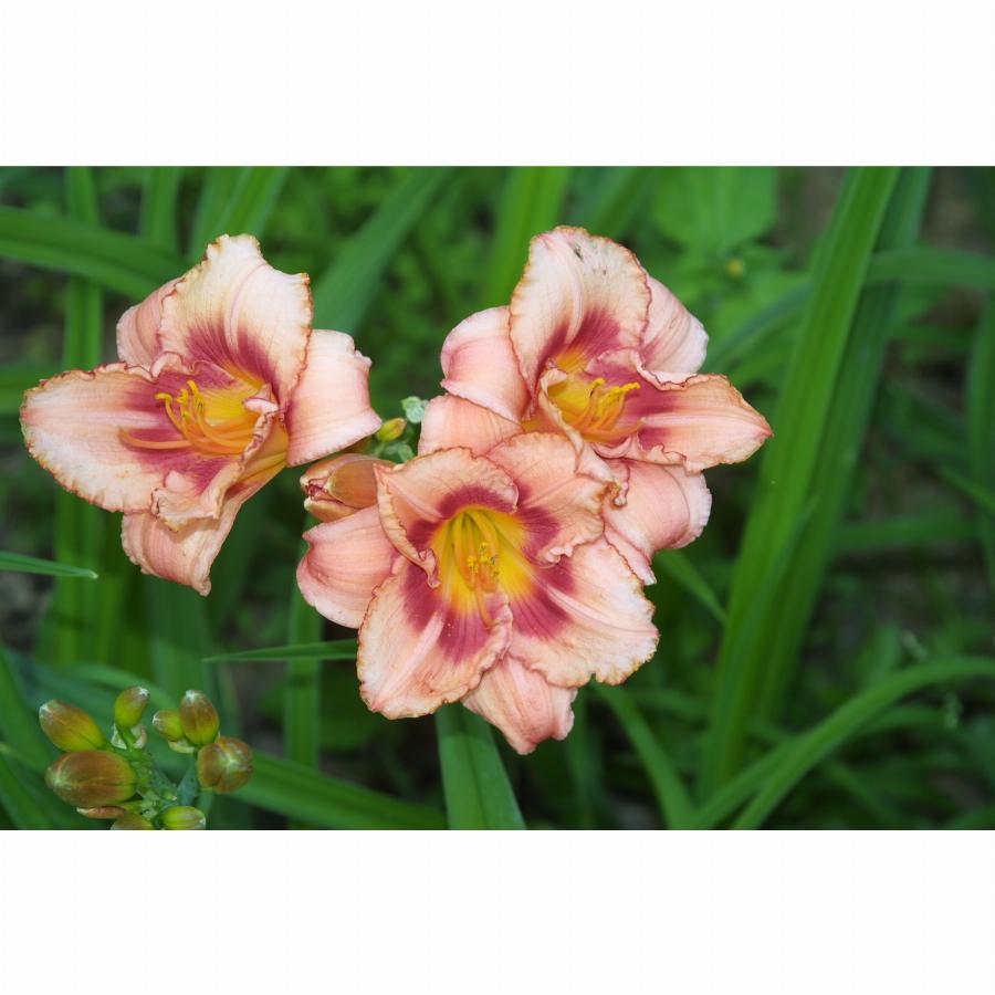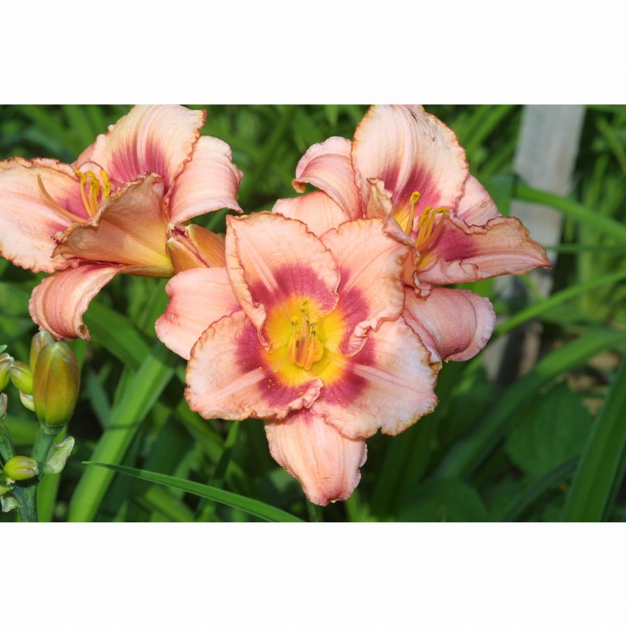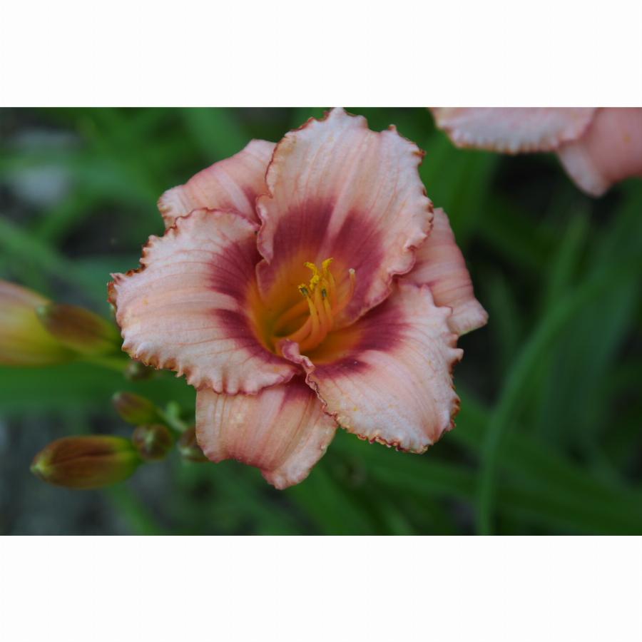 Высота растения 70см, нежно-розовый с темным глазком и каймой зеленое горло, повторное цветение. Цветение июль-август.