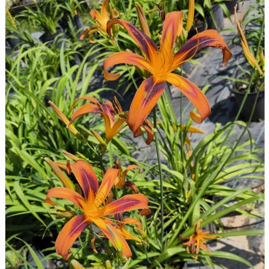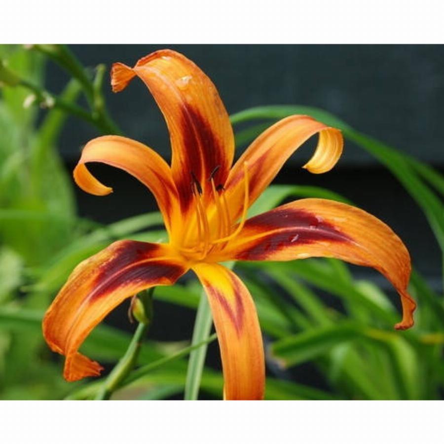Лилейник Гибридный Tigereye Spider — это декоративное травянистое растение с красивыми ярко-фиолетовыми цветками, которые распускаются в начале лета. Растение достигает высоты около 60 см и ширины до 90 см, имеет мечевидные листья и длинные цветоносы с множеством цветков. Цветы лилейника Tigereye Spider имеют диаметр до 15 см и состоят из шести лепестков с волнистыми краями. Лепестки имеют темно-фиолетовый оттенок с ярко-желтым центром, что придает цветкам особую привлекательность.
