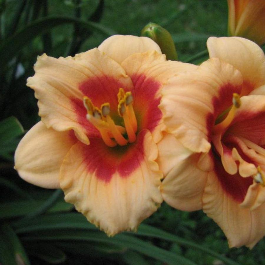 Очень пышные махровые цветки! Нежнейший персиковый оттенок лепестков контрастирует с ярко-красной серединкой.