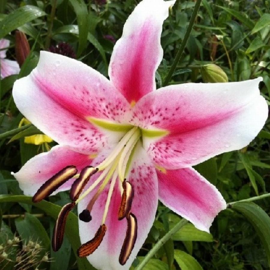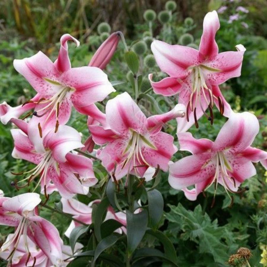 Лилия Anastasia- Нежно-розовый с белыми краями, лепестки закрученные, с волнистым краем. Внутри в центре розовая с переходом к краям в белоснежную (цвет ярче в холодную погоду), папилломы розовые, пыльники коричневато-оранжевые. Лепестки слегка волнистые, сильно закрученные. Стебли грациозно изогнутые. (Columbia-Platte Lilies, 1998 )
