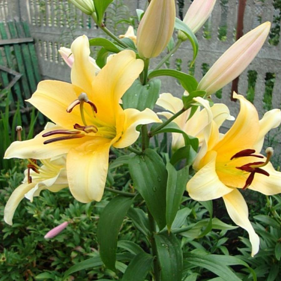 Тёмно-жёлтый в центре, светло- жёлтый на кончиках, кайма светло оранжево-желтая. Точки и папилломы отсутствуют, нектарники желто-зеленые. Диаметр цветка: 19,5 см Лепестки со слегка волнистыми краями и загнутыми кончиками.
