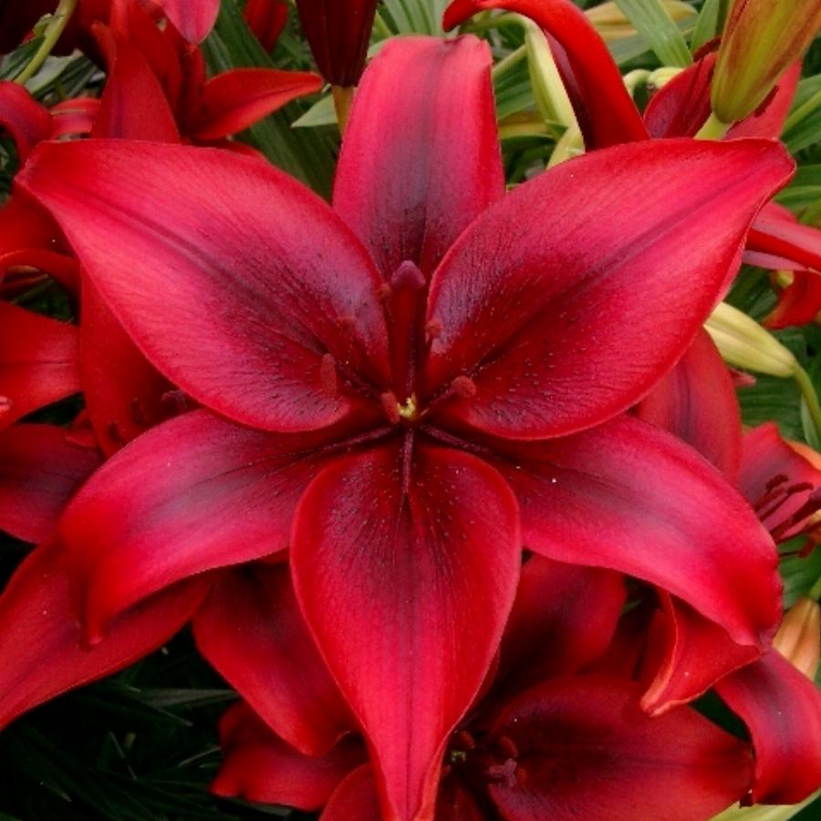 Очень декоративный сорт. Цветки темно-красные. Высота растения до 125 см. От посадки до цветения 90 дней. Великолепен для срезки, групповых и одиночных посадок.