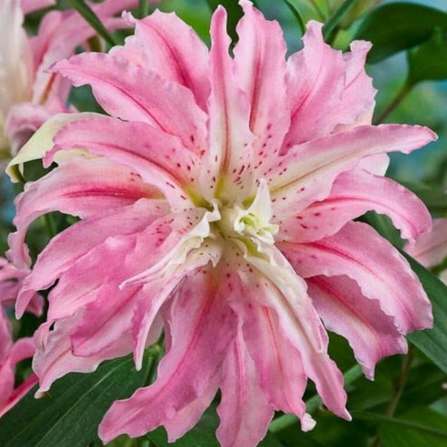 Большие, гофрированные цветки и сильный аромат с махровым строением цветка бело-розово-красных расцветок. Лилии Махровые Восточные гибриды на столько великолепны, что даже всего один распустившийся цветок – это уже роскошный букет! Высота лилии – 80-90 см, диаметр цветка – 15-20 см, сроки цветения – июнь-июль.