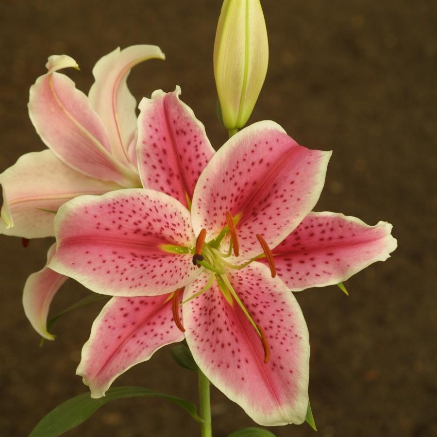 Розовая с ярко-красными полосами по всей длине лепестка и крапом в центре, волнистый край точки, папилломы присутствуют; нектарники зеленые, переходящие в желтые. Высота растения 95 см. От посадки до цветения 90 дней.