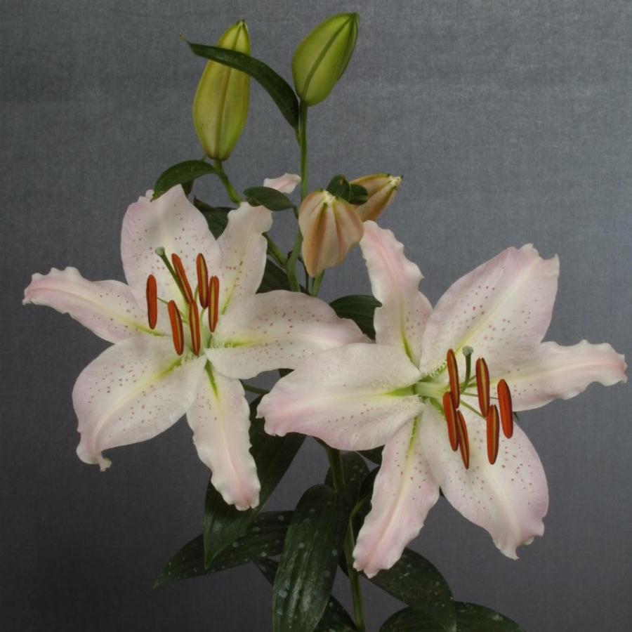 Бело-розовая, высота до 90 см, от посадки до цветения 105 дней.