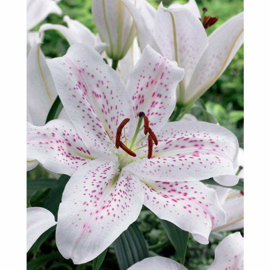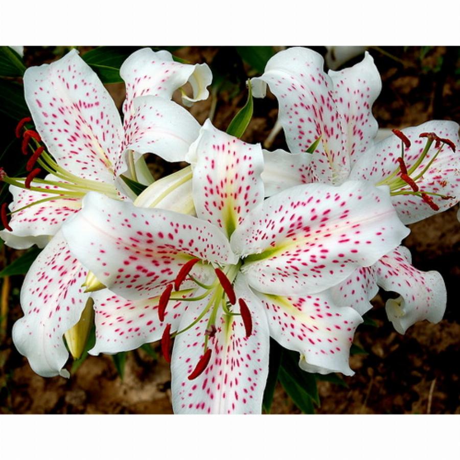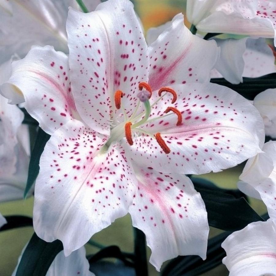 Экстраваганза- высота растения 120см, цветок белый с многочисленным лиловым крапом и штрижками по всему лепестку, крупный.