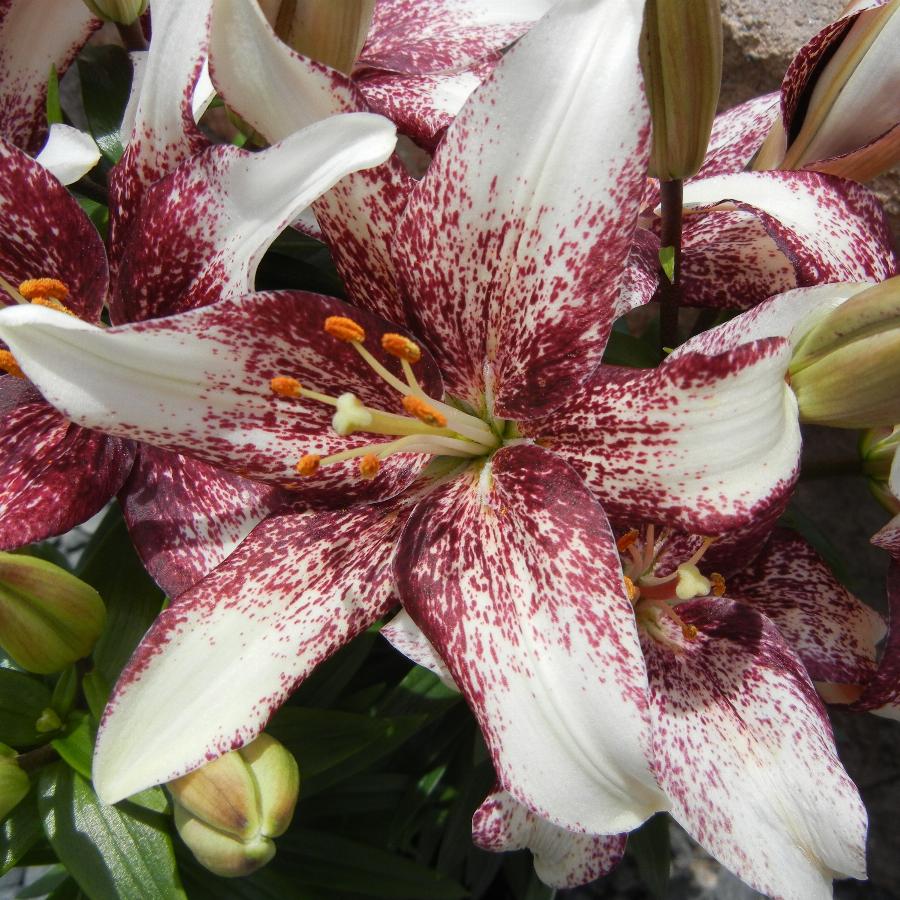 Азиатская лилия Crossover (Кроссовер) отличается высокими показателями зимостойкости и устойчивости к поражению вредителями, самый удачный и легкий сорт для выращивания в любом уголке страны. Яркой чертой этой лилии является потрясающий контраст лепестков, бордовые густые вкрапления широкой полосой располагаются у основания белоснежных лепестков, собранных в изящный цветок до 18 см в диаметре. Обильное и продолжительное цветение еще один большой плюс этого сорта лилий. На верхней части растения, высота которого доходит до 110 см, располагается копна бутонов.