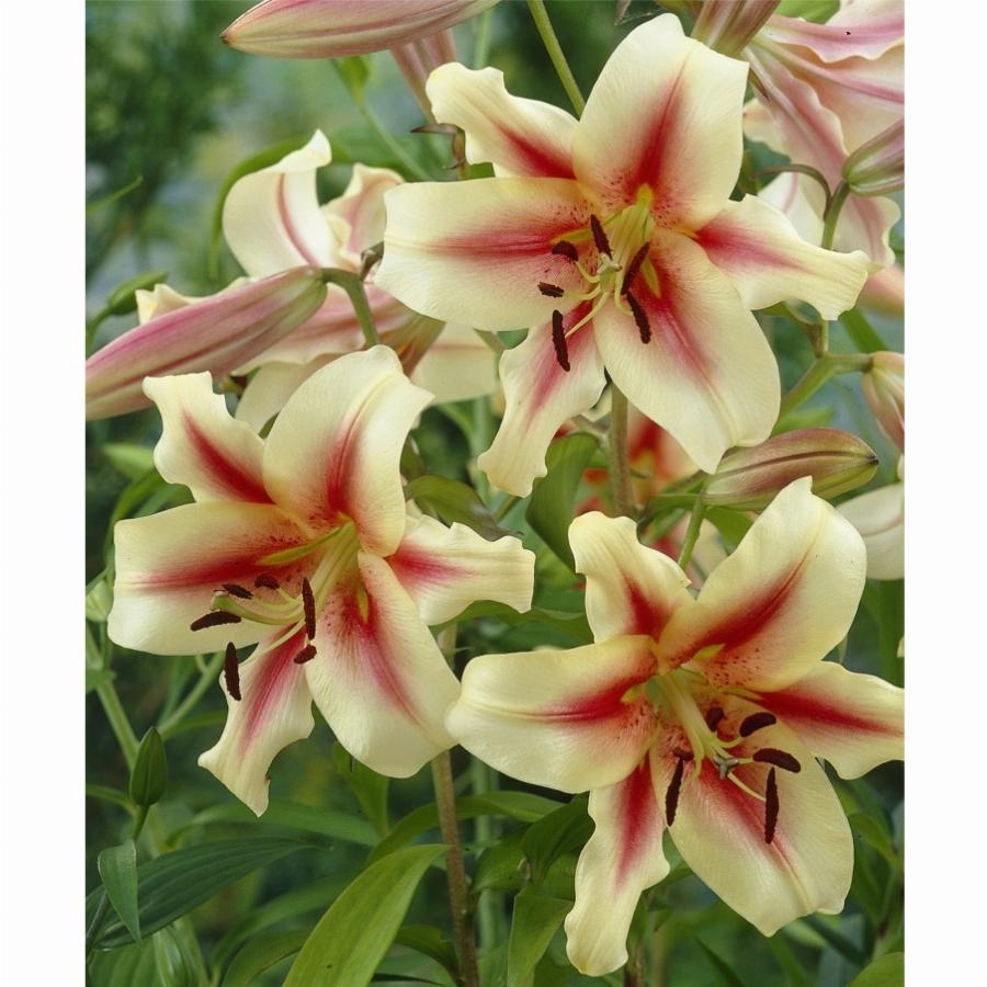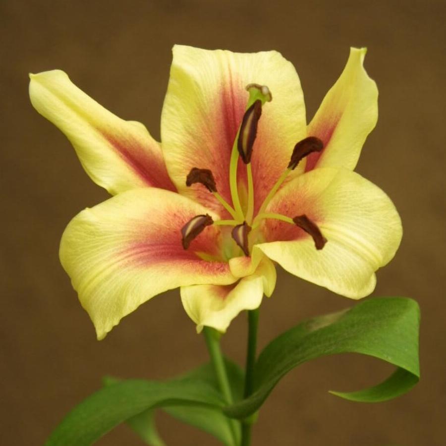 Жёлтый с красными полосками от центра до 2/3 лепестка. Высота растения 100 см. От посадки до цветения 90 дней.