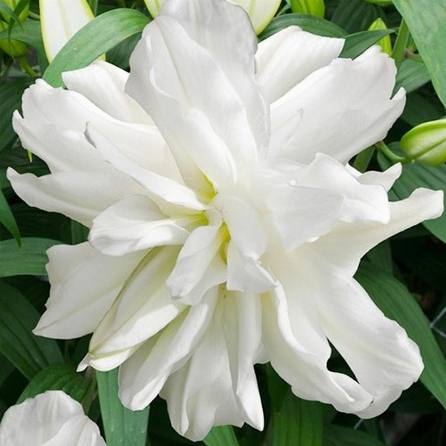 Морозоустойчивый гибрид с тонким ароматом и потрясающими пышными бутонами. На прочном темно-зеленом стебле до 120 см высотой формируются крупные цветки до 20 см диаметром. Слегка гофрированные лепестки восхищают нежным белым оттенком. Цветет с июня по август. Применяется ландшафтными дизайнерами для украшения клумб, газонов, рабаток. А также идет на срезку. В букетах не требует дополнений.