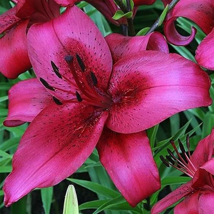 Сиренево-малиновый с темным крапом. Высота 100 см, диаметр цветка до 20 см, . Средняя высота этих лилий до 100 см. Их отличают потрясающе красивые, крупные цветы, 20-25 см в диаметре, чаще одноцветные, но иногда окаймленные, с высокими, изящными тычинками и декоративным крапом по центру. Зона 4 (от -34 до -29°C)
