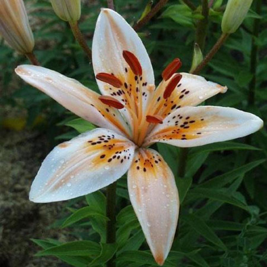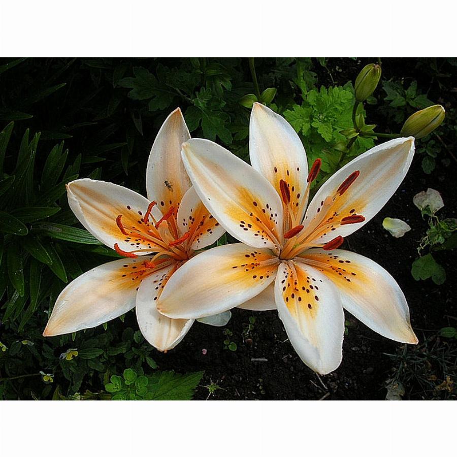 Яркий светло-оранжевый с широким белым краем, крап. Высота растения 60 см. От посадки до цветения 75 дней.