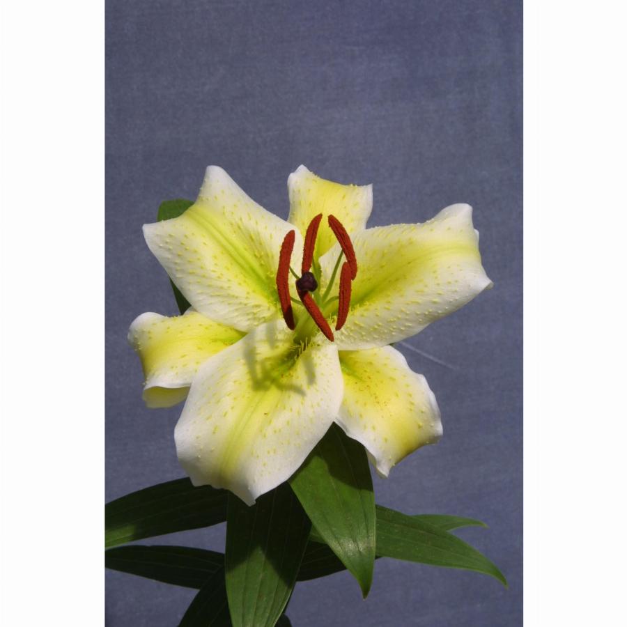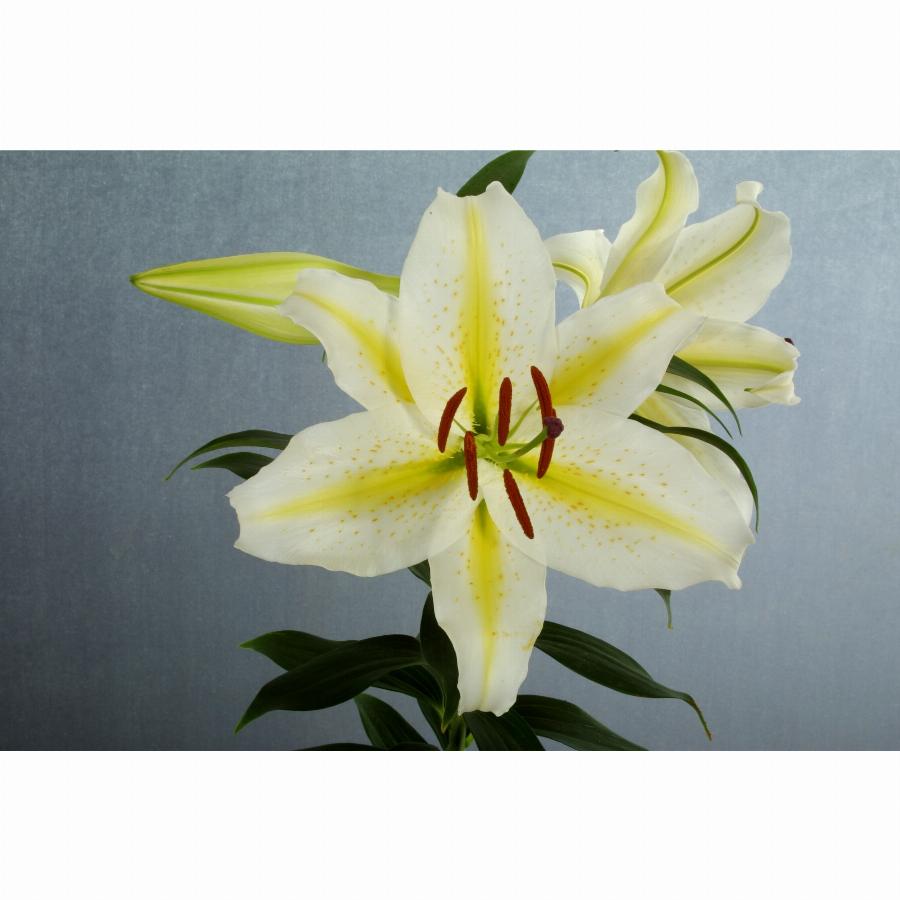 Белая с желтыми полосами по центу лепестков, высота растения 90 см, от посадки до цветения 110 дней.