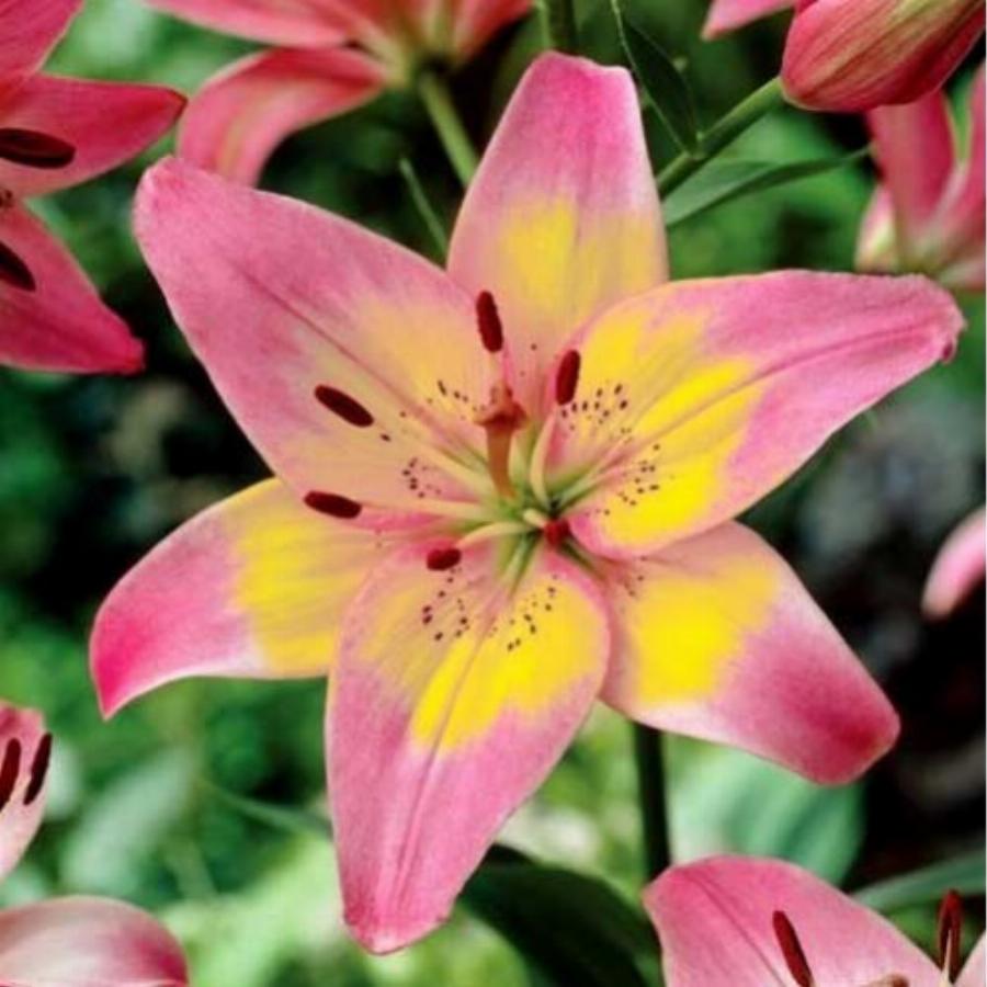Ннасыщенно розовая с желтым центром. ВЫсота растения 80 см. От посадки до цветения 85 дней.