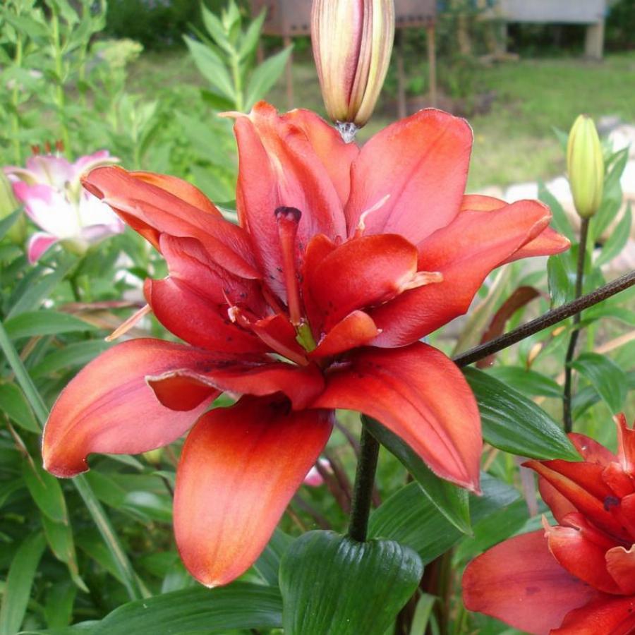 Цветки крупные (15-18 см), махровые, чашевидные, направлены вверх. Окраска лепестков густо-красная. Высота растения 90-110 см. Сорт дает качественную эффектную срезку, отлично смотрится в групповых и одиночных посадках.