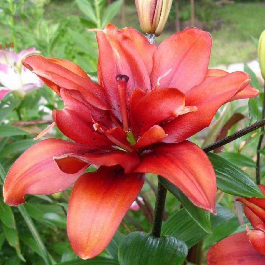 Цветки крупные (15-18 см), махровые, чашевидные, направлены вверх. Окраска лепестков густо-красная. Высота растения 90-110 см. Сорт дает качественную эффектную срезку, отлично смотрится в групповых и одиночных посадках.