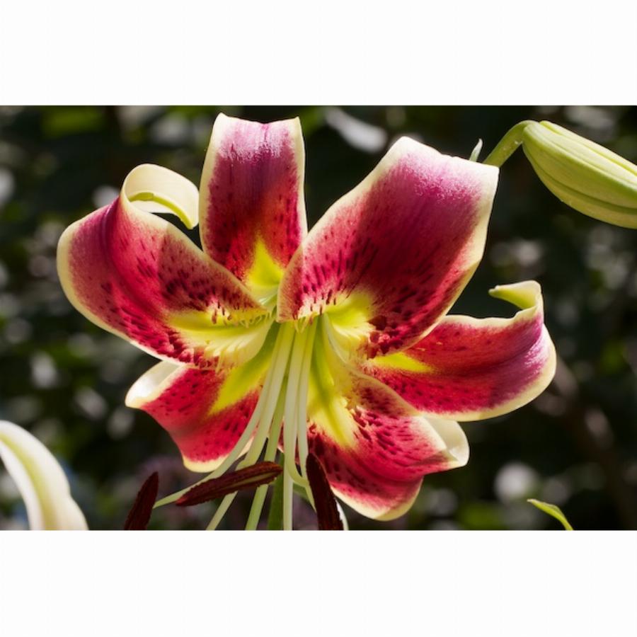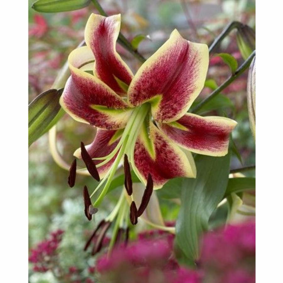 Окрас лилии Scheherazade говорит сам за себя — этот цветок словно сошел к нам со старинного персидского ковра с танцующим восточными красавицами. Взрослые и готовые к срезке лилии в длину достигают одного метра. Удивительные пестрые цветки с благоухающим ароматом появляются на стеблях во второй половине лета. Очень притягательна золотистая окантовка цветков — она делает их еще роскошнее и изысканнее.