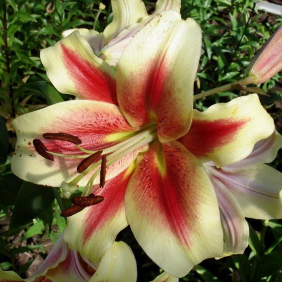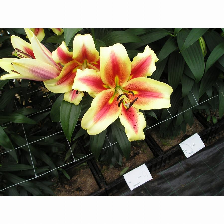 Цветки воронковидные, направлены верх, двухцветные: края лепестков интенсивно-желтые, в центре — красные, у основания лепестков темно-красные сосочки. Стебель высотой 100-110 см. Сорт используется для выгонки.