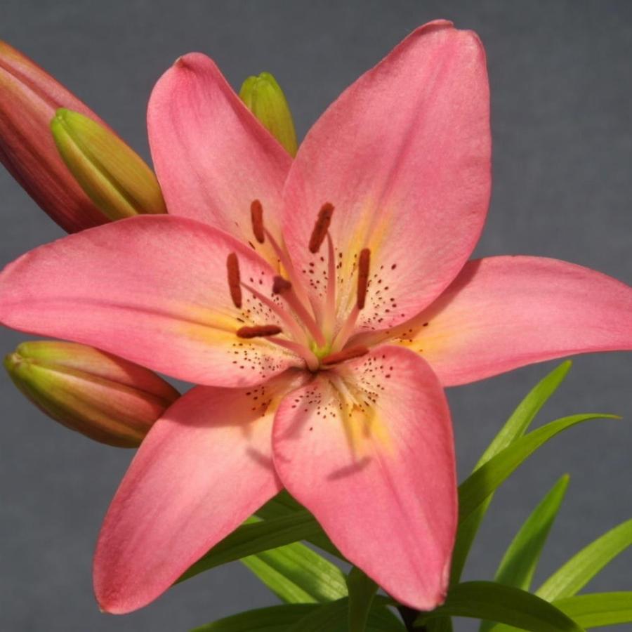 Розовая, центр желтый, тычинки красные. Высота растения 130 см. От посадки до цветения 90 дней.