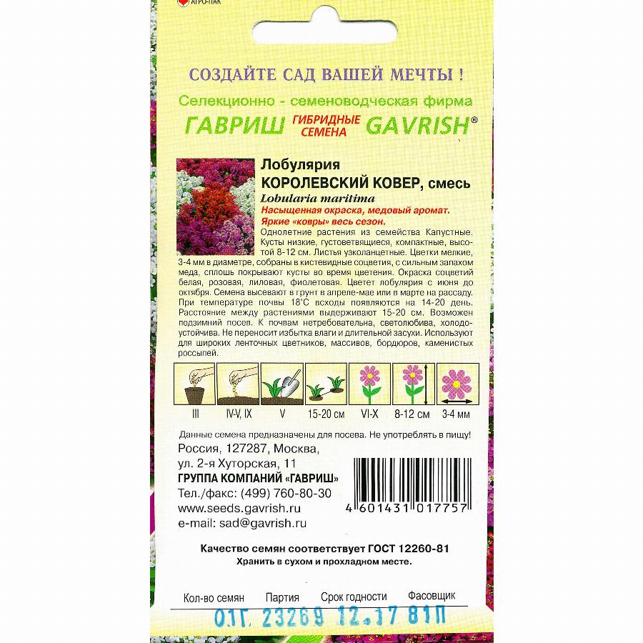 ЛОБУЛЯРИЯ КОРОЛЕВСКИЙ КОВЕР 0,1 Г гавриш Цена: 26.40 р. Производитель: ГАВРИШ Страна производства: Россия