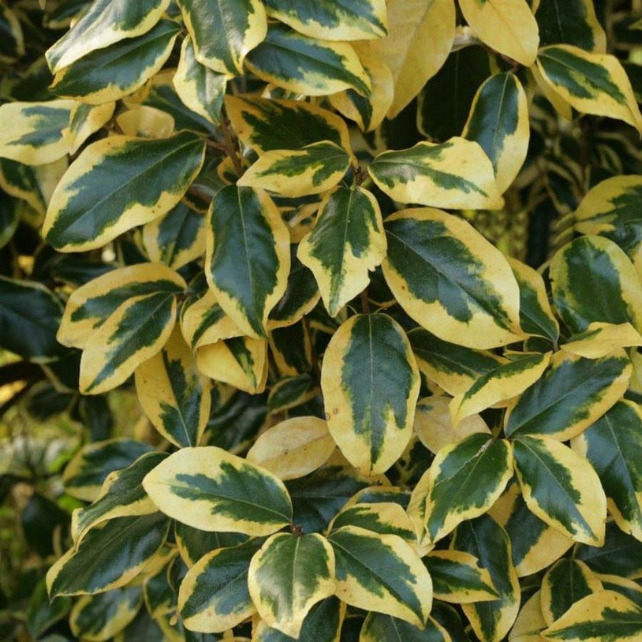 Быстро растет, образуя густую кулису. У него серебристые снизу кожистые листья, а появляющиеся в конце лета белые цветки сменяются оранжевыми плодами. Листья с желтыми пятнами.