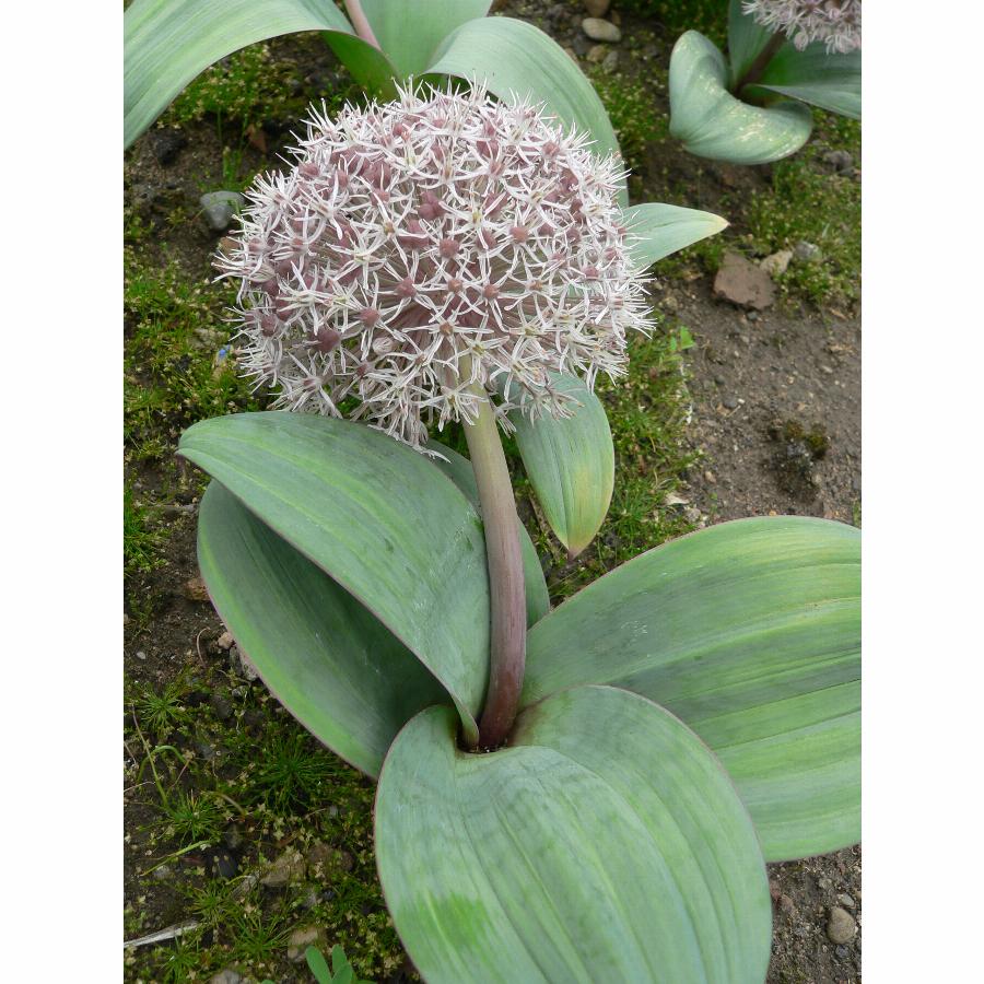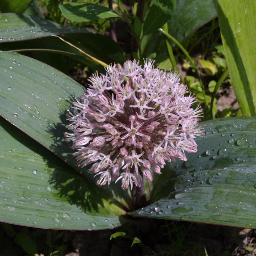 Цветки звездчатые, светло-фиолетовые, в густом шаровидном зонтике, листья ланцетные широкие 7-10 см. Стебель высотой 20-35 см. Цветет с конца весны да середины лета, около 25 дней.
