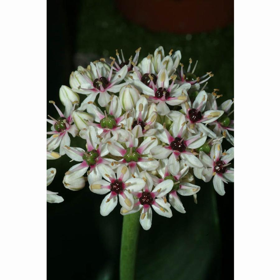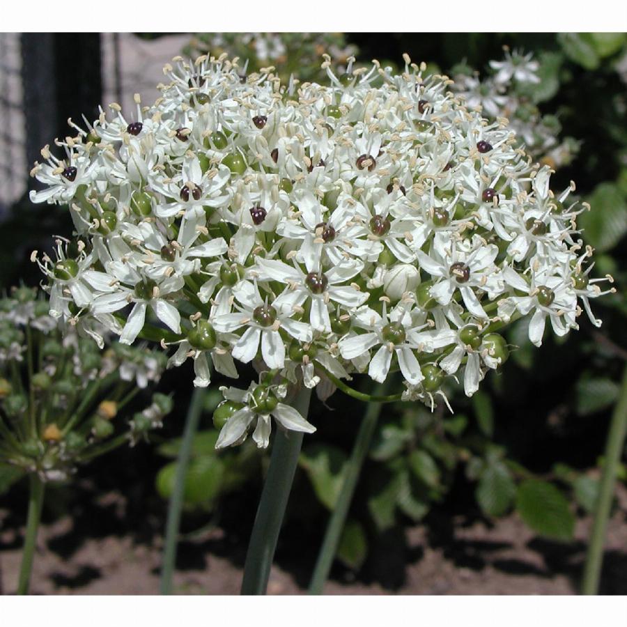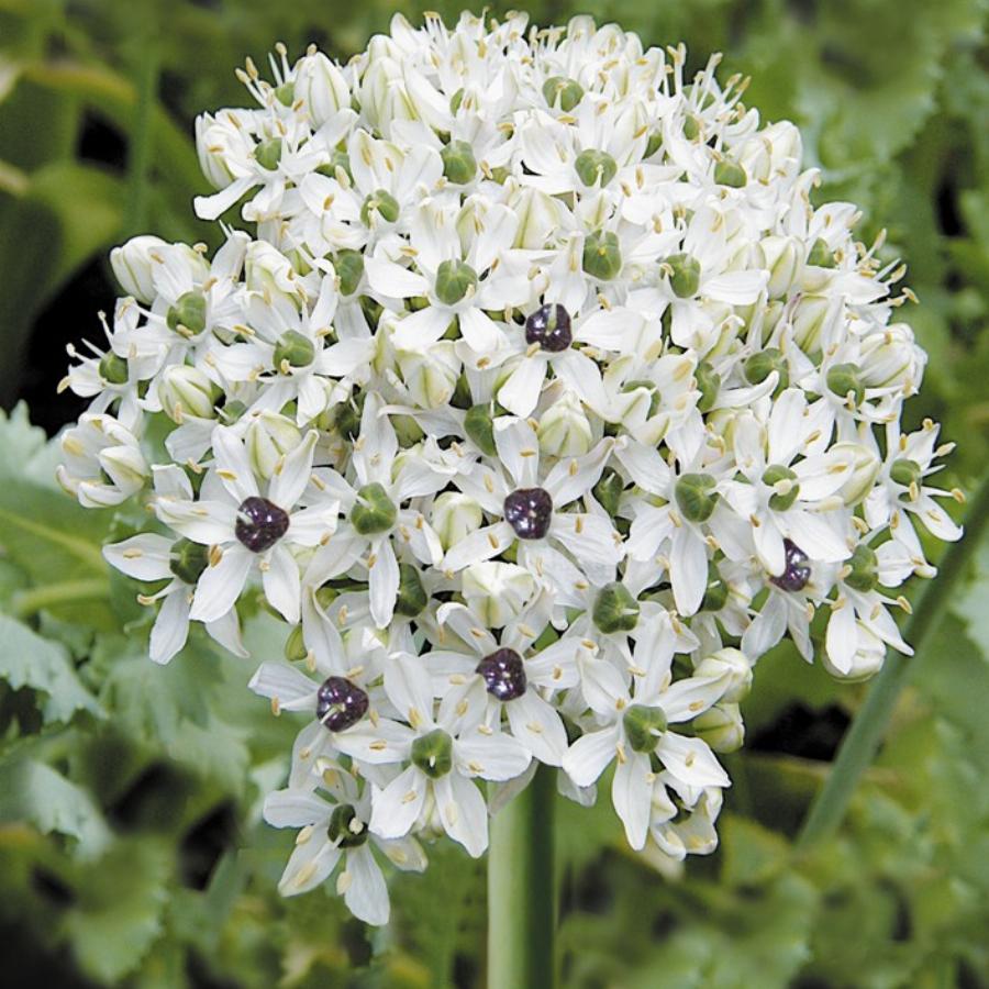Высота растения до 75см. Посередине каждого лепестка цветка проходит изумрудная центральная жилка, а в центре цветка ясно видны ярко-зеленые завязи. Соцветия лука изысканно красивы и обладают замечательным ароматом. Ланцетные листья имеют серо-зеленую окраску. Отлично стоит в срезке, подходит для букетов