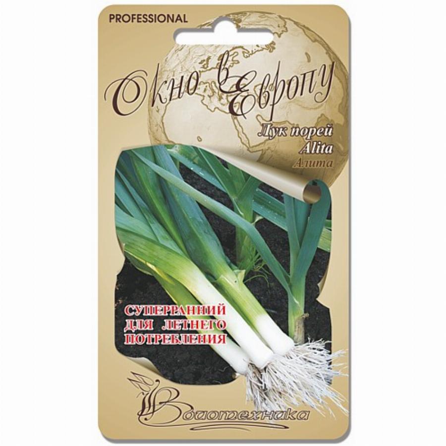 Ранний, летний лук порей. Единственный на рынке. Порей – один из наиболее ценных видов лука по урожайности, химическому составу, холодостойкости, способности к длительному хранению, устойчивости к вредителям и болезням. При этом растения лука-порея можно употреблять в пищу на любой стадии развития. Сорт Алита является чрезвычайно продуктивным и относится к группе так называемых ”ранних летних”. В эту группу входят сорта массовая уборка которых проводится в августе — сентябре. Растение формирует листья и ложный стебель. Листья плоские, линейно-ланцетные, сложенные по центральной жилке, длиной до 75-80 см, шириной 4-5 см., светло-зеленого цвета со слабым восковым налетом. Длина ложного стебля составляет 28-33 см, толщина 3-4 см.