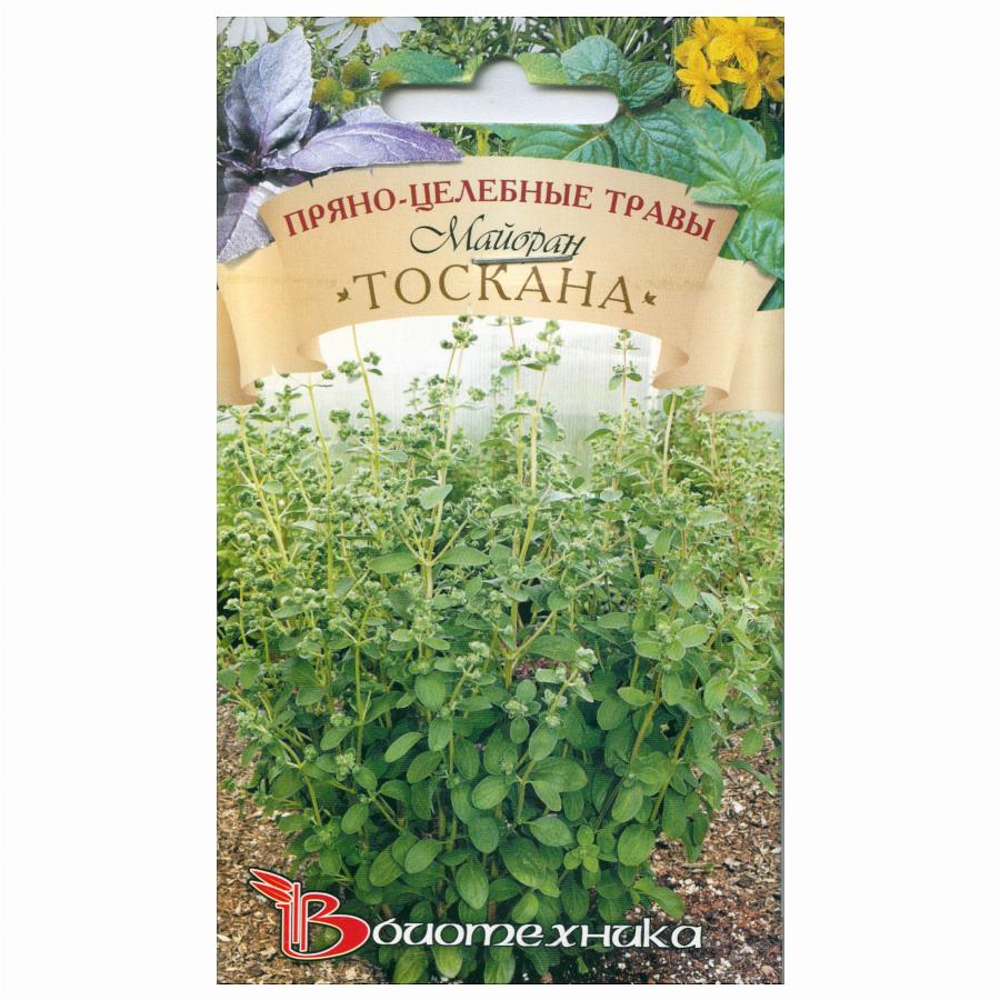 Может возделываться как прямым посевом в грунт, так и рассадным способом. Рассадное выращивание наиболее предпочтительно для дальнейшего культивирования растений в горшках или других емкостях. Посев проводят с тем расчетом, чтоб перед высадкой на постоянное место рассада имела возраст 60-70 дней. Посев производится в емкость со светопроницаемой крышкой для защиты семян и грунта от пересыхания. Грунт мелкодисперсный, с малым содержанием питательных веществ, увлажненный. Семена равномерно распределяются по поверхности грунта, не присыпают. Полив лучше проводить в виде опрыскивания. Прорастание медленное-10-14 дней при температуре + 20-25С и дополнительном освещении (в феврале-марте 40-60 Вт/м2) Емкость регулярно проветривается, крышка убирается плностью только после появления дружных всходов. Дальнейшее культивирование осуществляется при температуре + 18-20 С. Пикировка проводится в фазе двух настоящих цветочков, через 20-25 дней после появления всходов в горшочки диаметром 4-5 см. За время выращивания в рассадном горшочке растение рекомендуется подкормить два раза жидким полным минеральным удобрением с микроэлементами. Однолетнее пряно-вкусовое растение, образующее плотные,прямостоячие кусты высотой до 40 см, для выращивания в открытом грунте и в горшках. Сорт «Тосккана» относится к популяции сильно облиственных майоранов, предназначеных для получения пряной зелени.Цветущие растения привлекают большое количество бабочек. Обладает нежным не навящевым пряным ароматом и легким терпким вкусом, что делает его универсальной приправой, как для мясных, так и для овощных блюд. В высушеном виде в качестве настоя способствует укреплению памяти.