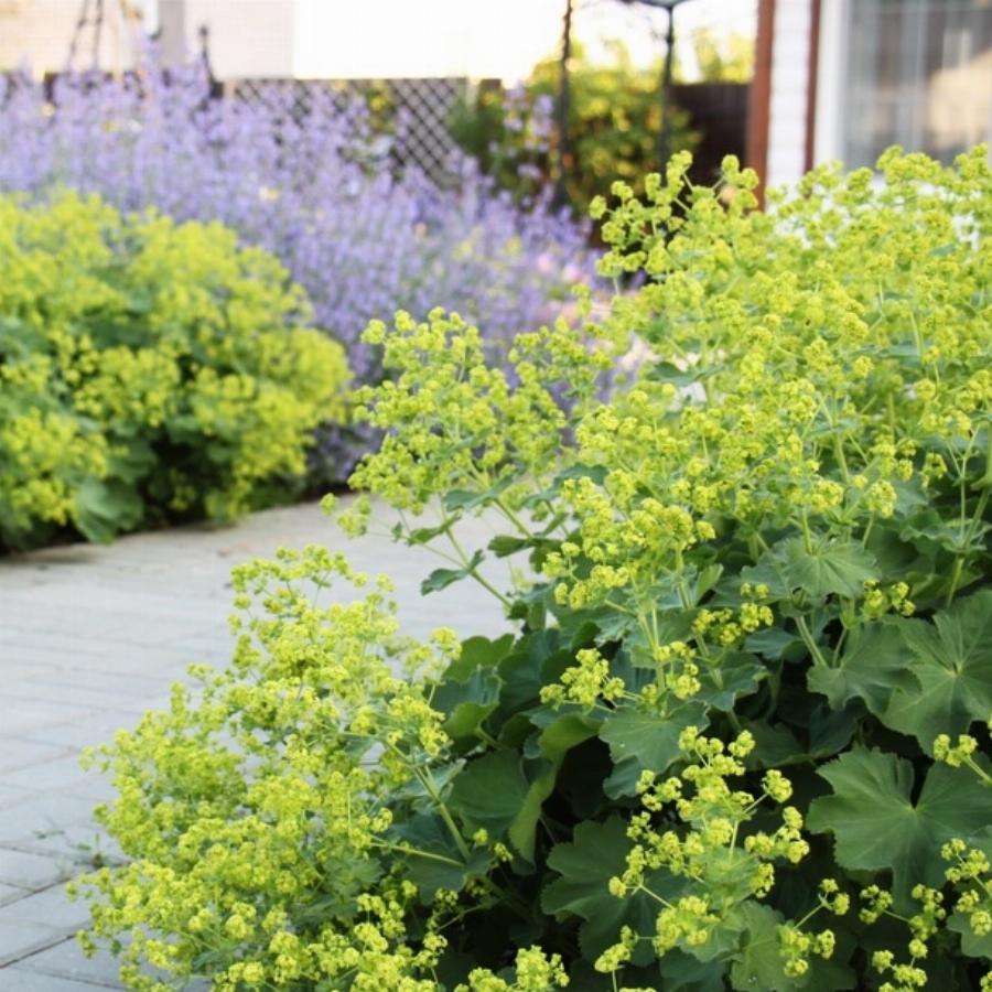 Многолетник. На первый взгляд неброское растение, но является классическим дополнением к розам, пионам и другим ярким многолетним цветам в миксбордере. Выгодно их подчеркивает как ажурной листвой, так и воздушными желтоватыми «облаками» соцветий. Манжетка неприхотлива в уходе. Переносит любой уровень освещенности, терпима к засухе и не требовательна к составу почвы.