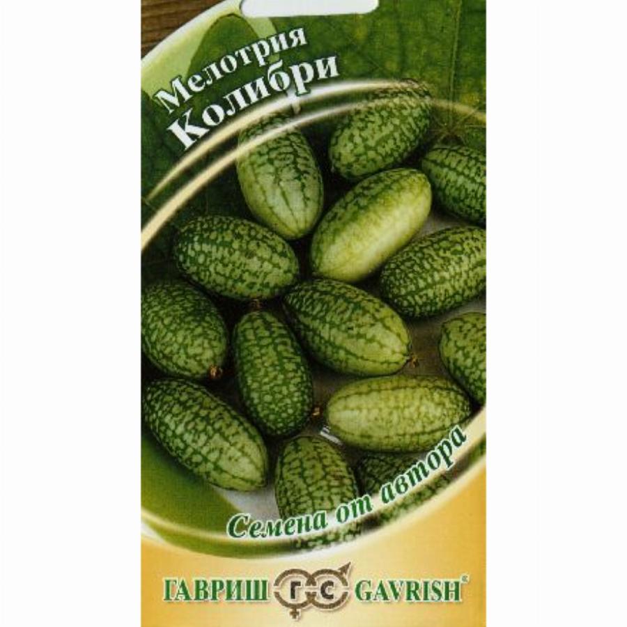 Колибри — новый сорт, рекомендуется для выращивания на приусадебных участках. Мелотрия — малораспространенная овощная культура семейства тыквенных, родом из Африки. Это своеобразный миниатюрный огурец — небольшие плодики (1,5-2,5 см) светло-зеленого цвета по вкусу напоминают огурец, а плотная кожица имеет приятный кисловатый привкус. Прекрасно подходит для засолки, маринования, по вкусу напоминает пикули. Мелотрия — однолетнее травянистое растение, которое формирует побеги длиной до 3 м. Листья треугольной формы, остороконечные, опушенные. Растения имеют ярко-желтые воронковидные раздельнополые цветки: женские расположены на растениях одиночно, мужские собраны в узлах по нескольку штук. Мелотрию используют в озеленении, растения хорошо ветвятся, быстро разрастаются, легко крепятся усиками к всевозможным опорам, полностью оплетая их. Очень неприхотлива, любит рыхлые, хорошо увлажненные почвы. Уход заключается в своеременных прополках, поливах, рыхлениях, 2 раза за сезон необходимо подкормить комплексными удобрениями.